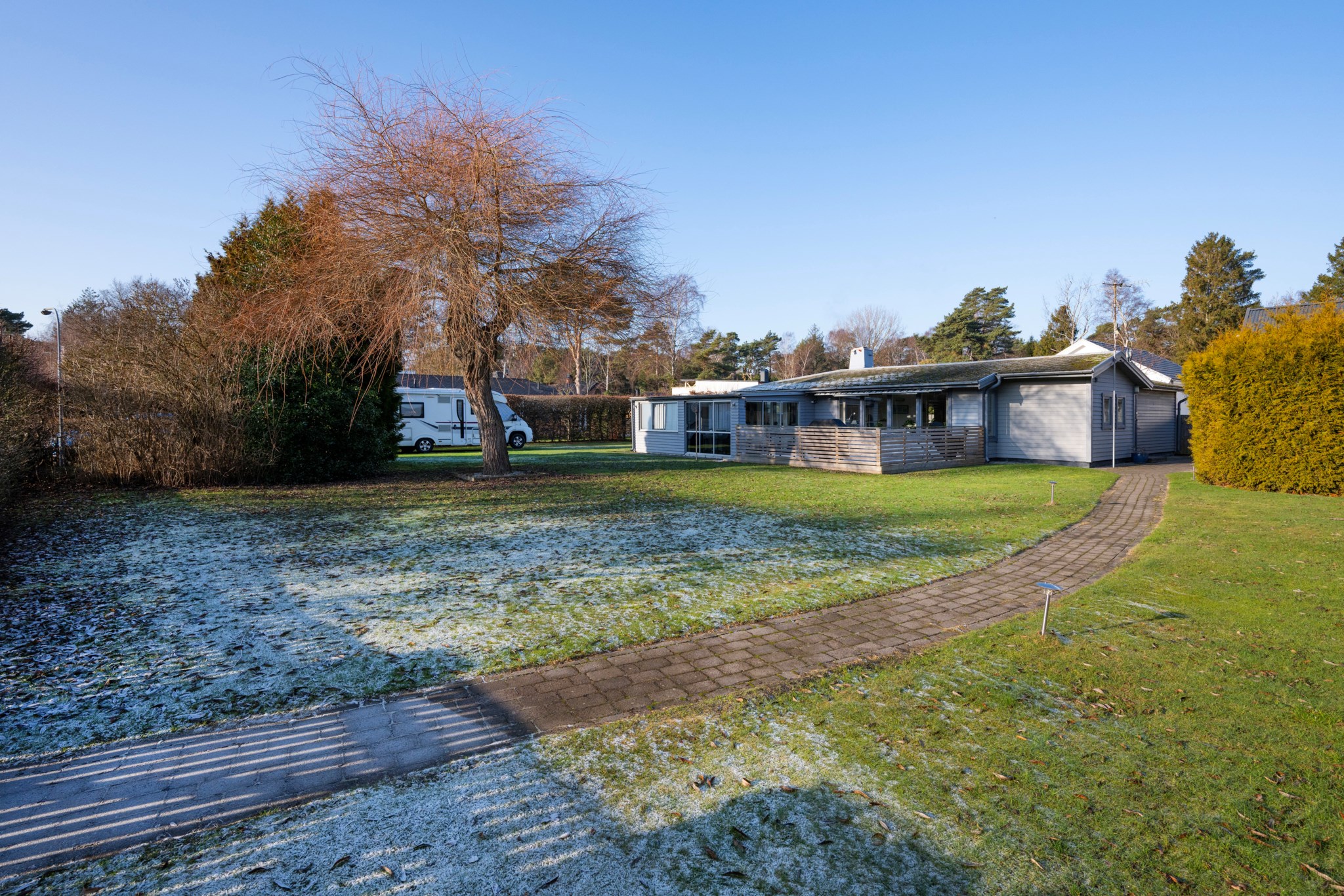 Generöst trädäck i söder, uteplats i söder väst och öst.