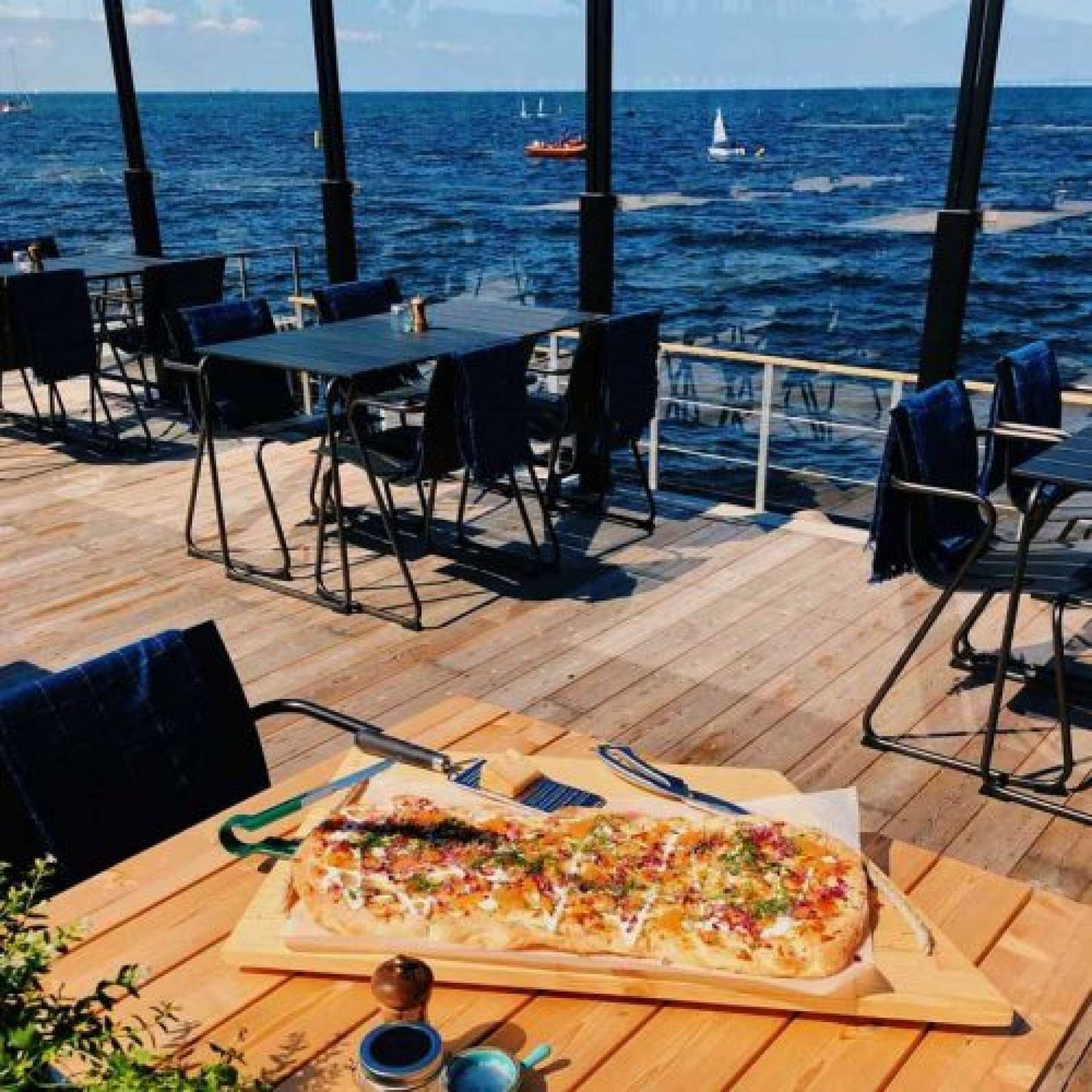 Ett kvällsdopp vid 20:00 på kvällen är oslagbart just där. Solen är fortfarande närvarande i väster, vattnet är klart och en bänk finns att sitta på för att beskåda solnedgången. Den goda löjromspizzan på restaurang Bryggan bredvid blir en fin avslutning.